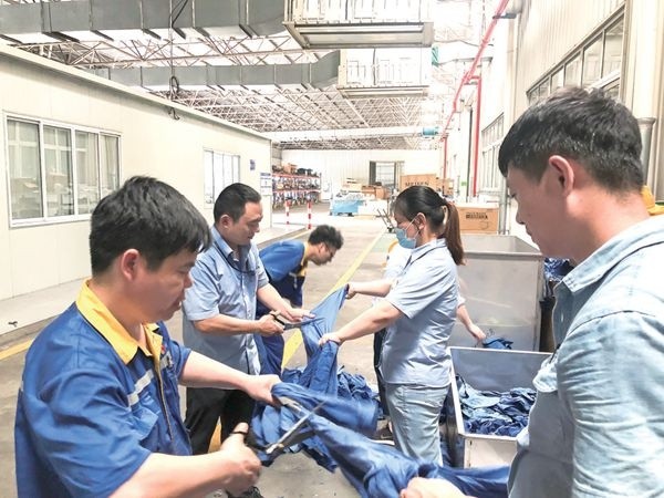 8 月23 日中午,從五金倉庫傳來“咔嚓咔嚓”的剪刀聲,清脆且有力,原來是中青班(二期)學(xué)員在開展為期兩周的義務(wù)勞動——回絲處理。