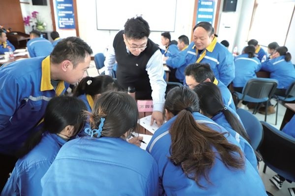 張豐其從品管圈的起源、發展、目的和宗旨開始,結合公司實際案例講解每個活動步驟的注意事項,并對比其他企業的優秀案例,找差距、謀改善;在培訓過程中進行分組活動,各組學員以公司實際問題為例,通過頭腦風暴、5WHY 等方法進行原因分析,繪制魚骨圖和制定改善對策。全體學員積極參與,經歷一次愉快的精神之旅,溫故而知新,受益匪淺。