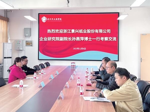 12 月8 日下午,景興紙業企業研究院副院長孫燕萍博士一行前往嘉興南湖學院,同該院新材料工程學院副院長孫詩清、生物工程專業專任教師歐陽水平、輕化工程專任教師高普等多位博士就校企合作問題開展深度交流。