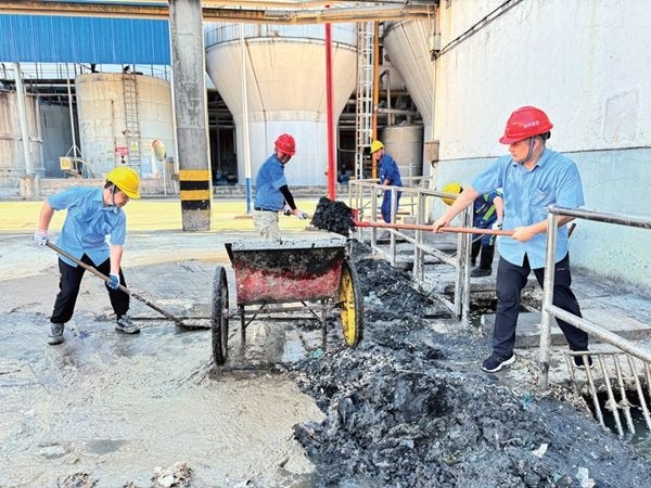 炎炎夏日,面對持續的高溫天氣,公司黨員干部們不畏酷暑,充分發揮先鋒模范作用,在大停機期間積極投身到溝道清理的第一線。他們手持工具,深入溝道進行細致的清理工作,對車間排水管網進行全面清掏,不放過任何一處可能導致堵塞的淤泥和雜物,確保排水系統的暢通和環境的整潔。