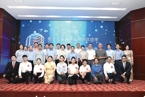 7月5日晚上,景興紙業第十九屆演講比賽在公司黨群服務中心三樓會議室成功舉行,公司副總經理魯富貴、總經理助理沈守賢、總工程師程正柏等領導及特邀評委、各部門經理、啦啦隊成員共計300余人出席此次活動。